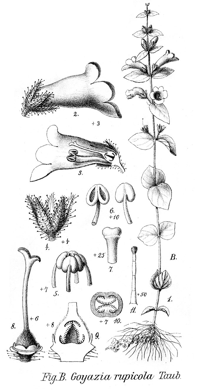 Goyazia rupicola Taubert, type species Bot. Jahrb. Syst. 21: t. 2 (1896), original illustration |